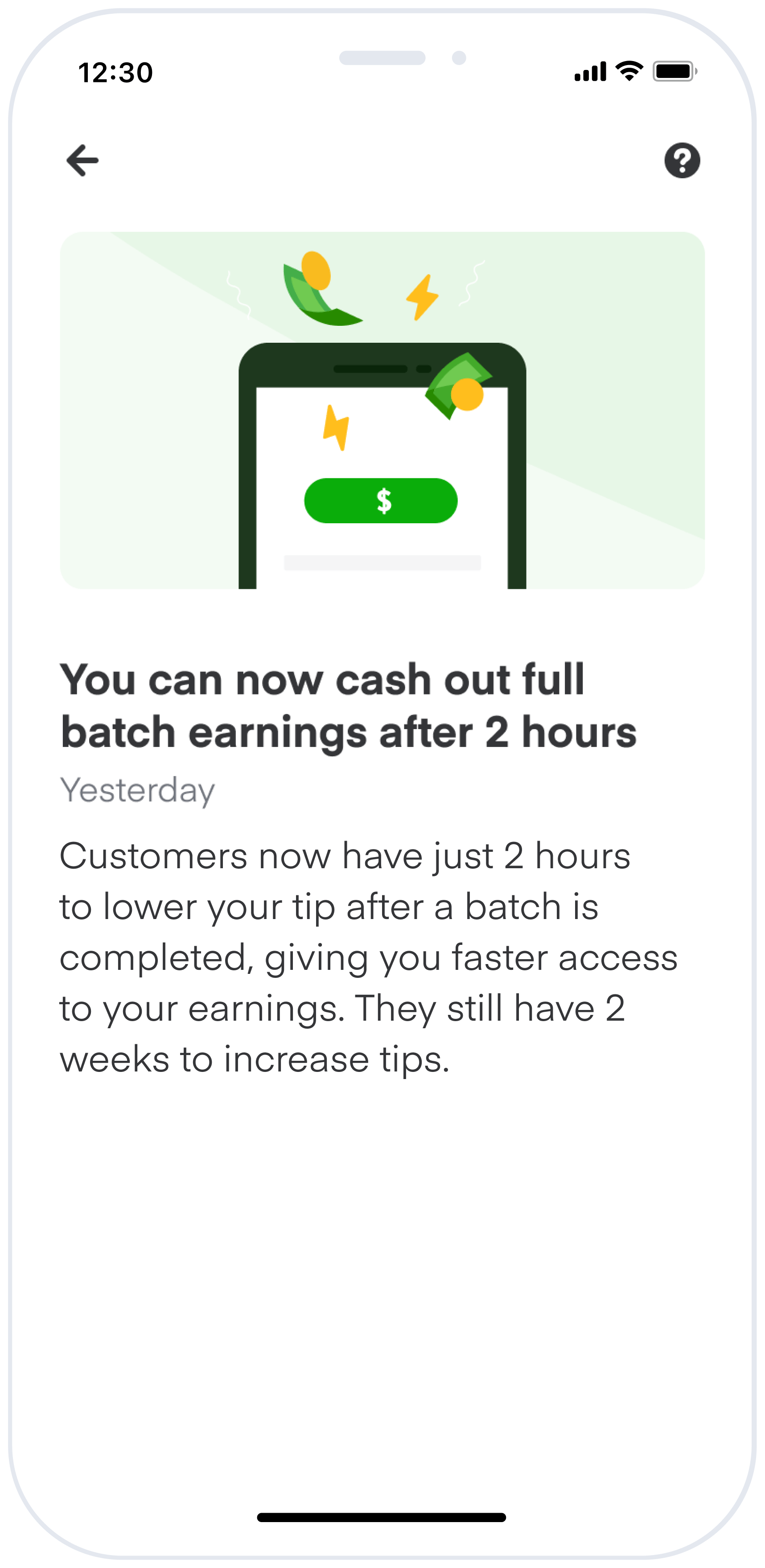 - If a customer increases their tip, you’ll see these additional earnings in your account and can cash out immediately.