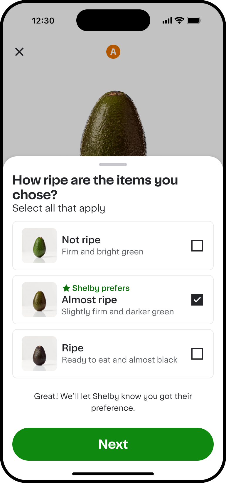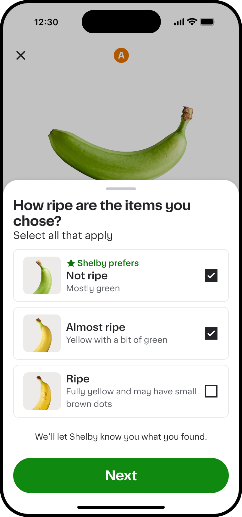 We know you work hard to get your customers exactly what they want, putting care into every order. This commitment to quality is what sets Instacart shoppers apart, and we strive to best support you in delivering excellence. That's why we're rolling out a new feature to make it easier for you to serve your customers with less guesswork. Starting today, customers can set preferences with a new feature, Preference Picker, on select items—like banana ripeness—so you'll know exactly what to look for.