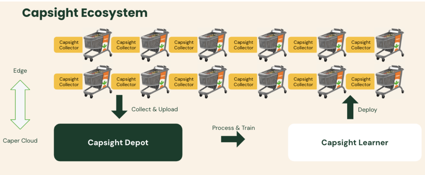 - Capsight Collector: An intelligent, on-device agent that captures high-value data from a variety of cart sensors (camera, weight, location, etc.).